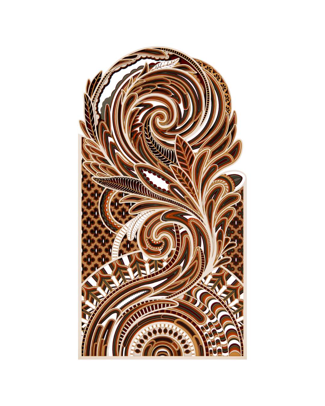 Designed to balance form and function, this table showcases flowing organic patterns precision-cut into multiple layers, creating depth, movement, and a striking play of light and shadow. The result is a bold centerpiece that feels both modern and timeless—perfect for curated interiors and design-forward homes.